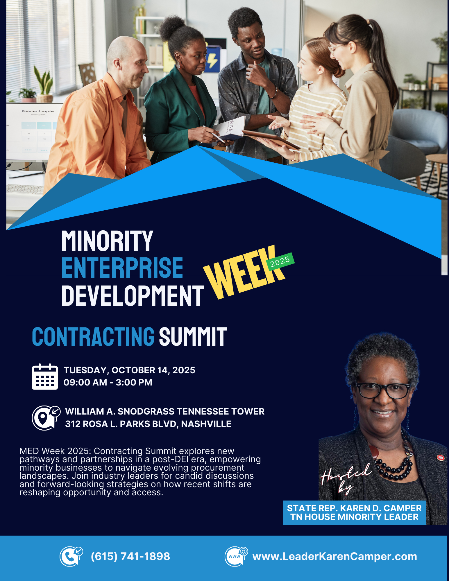 State Representative Karen D. Camper, a Memphis native who has served the 87th District since 2008, achieved historical significance as Tennessee’s first African-American woman to lead a caucus in the state's General Assembly. Elected Democratic leader in November 2018, she holds critical positions in committees such as House Finance, Ways and Means, Government Operations, Commerce, Calendar and Rules, Banking and Consumer Affairs, and the House Select Committee on Ethics.